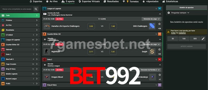 O bet992 oferece uma grande seleção de opções de apostas em e-sports com probabilidades competitivas